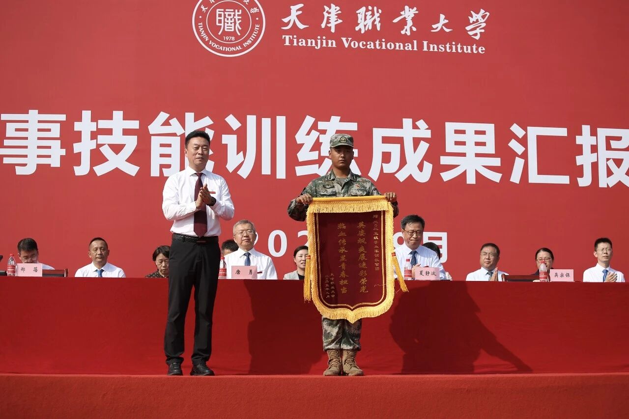 校党委副书记、校长吴宗保同志宣读《国产精品自产拍在线观看免费关于2025级学生军训的表彰决定》,向2025级学生军训教官团颁发锦旗,对承担本次军训任务付出辛勤汗水的教官们表示衷心感谢。与会领导为军训中获奖的优秀集体和个人颁发了锦旗和证书。