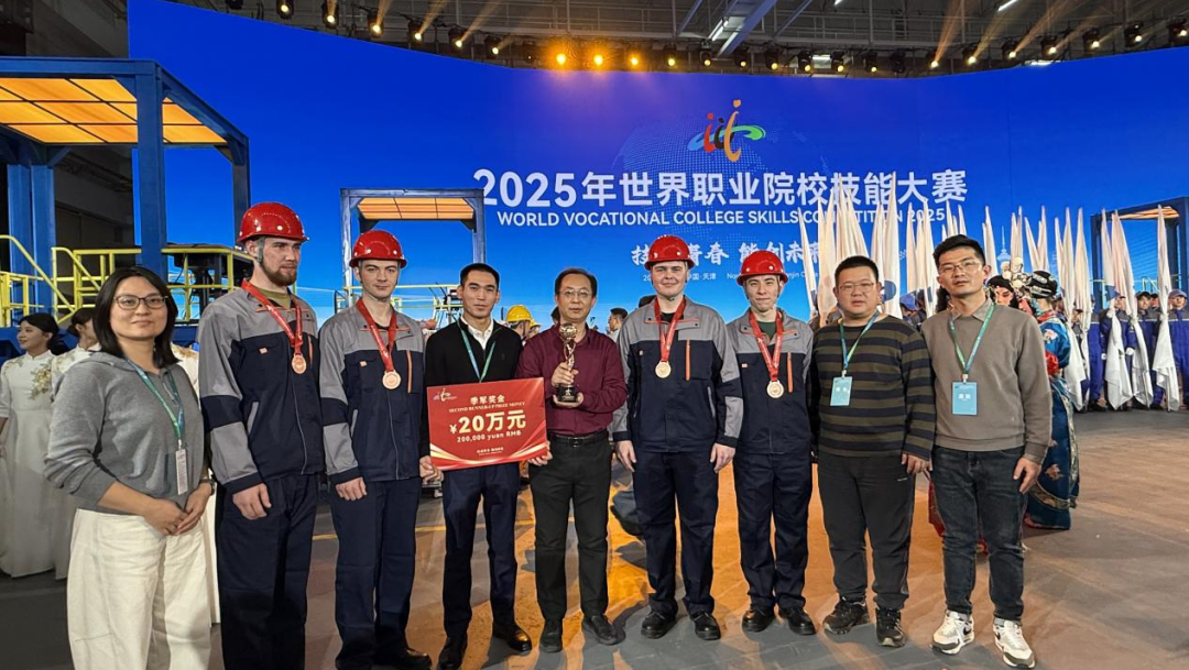 11月14日晚,2025年世界职业院校技能大赛冠军总决赛在天津圆满落幕,经过激烈角逐,由我校在哈萨克斯坦建设的鲁班工坊培养的东哈萨克斯坦技术大学参赛选手,凭借其卓越的创新项目和稳定的现场发挥,在众多强手中脱颖而出,最终斩获大赛总决赛季军!