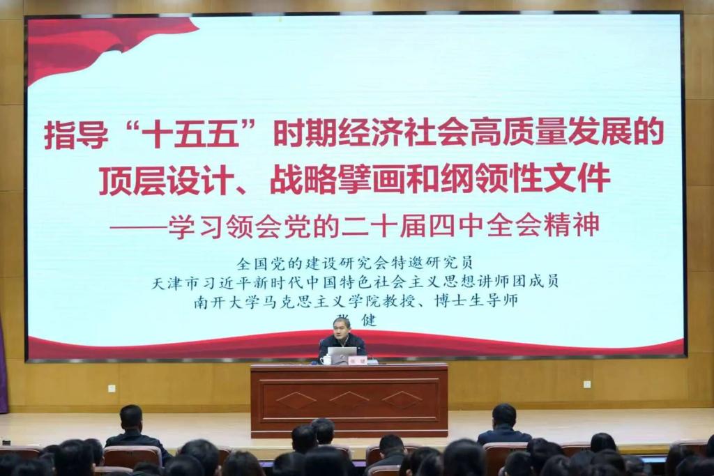 专题辅导阶段,邀请了南开大学马克思主义学院教授张健作题为《指导“十五五”时期经济社会高质量发展的顶层设计、战略擘画和纲领性文件——学习领会党的二十届四中全会精神》的专题讲座,从更高维度、更广阔视野带领大家深刻领悟全会精神。