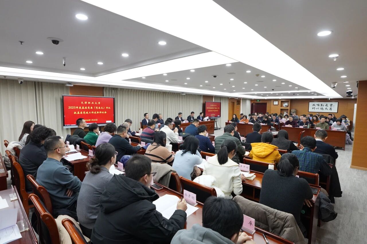 2026年1月22日,我校召开2025年度基层党委(党总支)书记抓基层党建工作述职评议会。校领导、校党委委员、纪委委员、职能部门主要负责人、基层党委(党总支)书记以及教学单位行政主要负责人、党支部书记代表、部分“两代表一委员”和党员干部群众代表参加会议。校党委书记夏静波主持会议并讲话。
