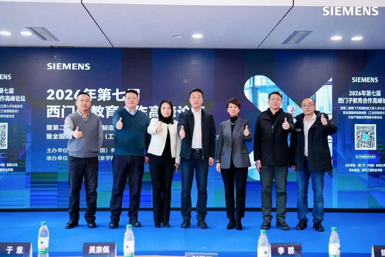 近日,我校联合西门子(中国)有限公司,在青岛召开2026年全国高端装备制造(工业控制技术)行业产教融合共同体年度工作会议。我校校长吴宗保、机电学院及合作办相关负责人出席会议,与来自全国教育界、产业界同仁共探产教融合新路径,共话智能制造新未来。